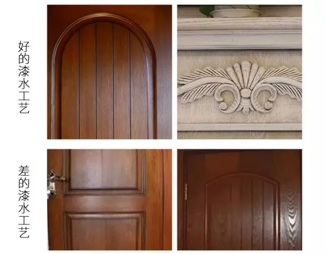 漆水完全不一樣,我們是嚴格按照美式涂裝的做法:木磨--灰磨--刷封固底漆--噴底色--噴底漆--油磨--搽格里斯--打毛刷--噴底漆--油磨--網(wǎng)紗--面修色漆--面漆,而市場上的貼板門,大多數(shù)的漆水只做了二底一面,甚至還有做一底一面的,少做一次,材料少一次,工錢少一次。漆工材料及工錢高:60-120元。
